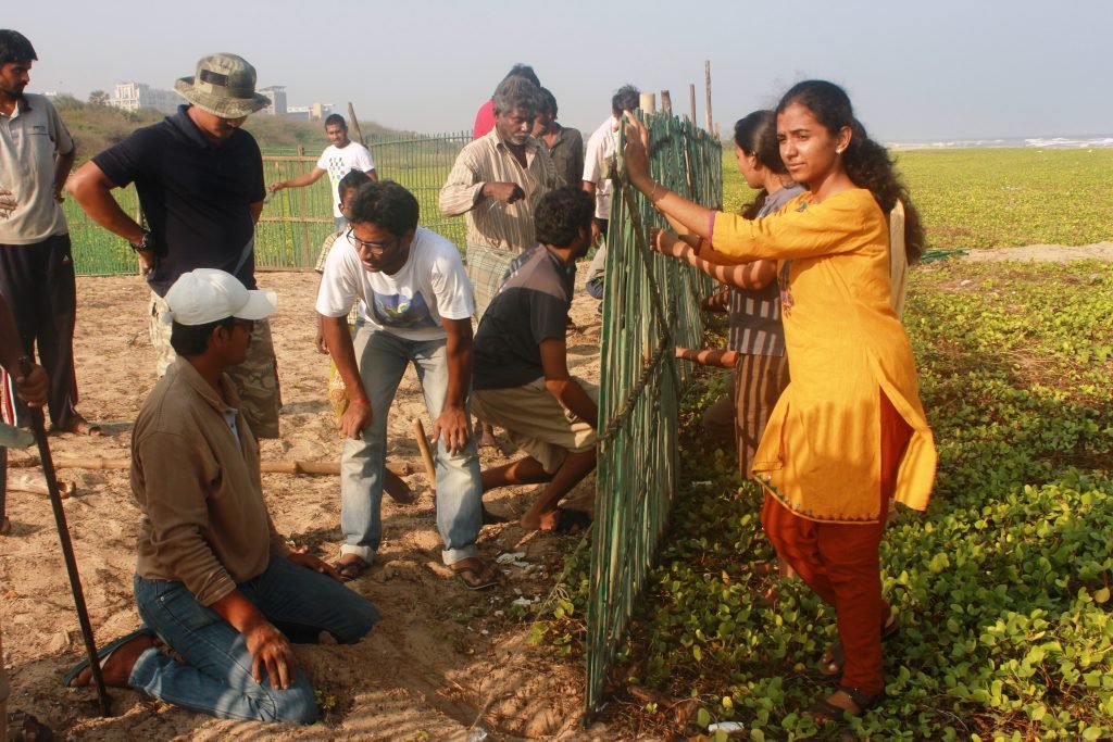 Then the question arose as to whether we should walk the last stretch of the beach before the Adyar river which was bordered by the walls of the Theosophical society and, therefore, dark and uninhabited. Many felt that the conditions there were ideal and that we should just leave it be. However, we had to set up our hatchery there as it was the only safe place. We also came to know that the nests there barely survived because of a huge population of feral dogs and a few jackals. While we were happy to let the jackals multiply using the turtle eggs, we were not willing to be so empathetic towards the feral dogs and we still keep racing to reach the nests before they do. Every year since, we have been doing a round of ABC (animal birth control) in Urur Kuppam to control the dog population.
